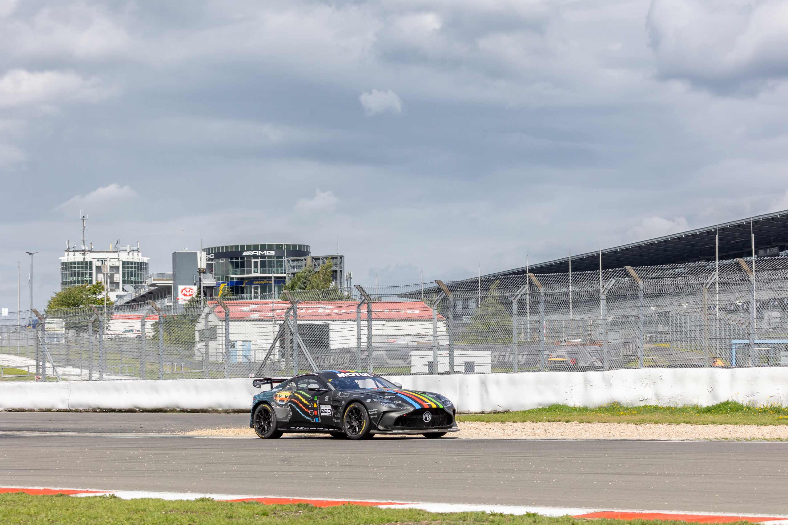 Im Fokus: der Aston Martin Vantage GT4 Evo – kraftvoll, präzise, bereit. Am Steuer: Jan Philipp Springob und Storm Gjerdrum, das eingespielte Fahrerduo mit klarer Mission.